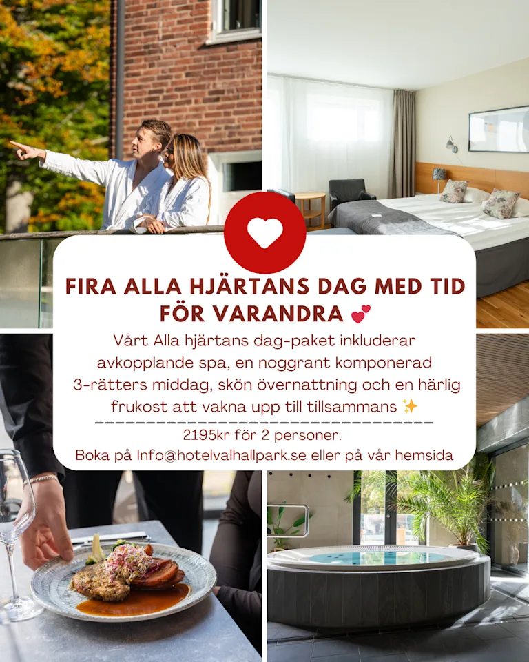 Fira Alla hjärtans dag med tid för varandra 💕 3-rätters middag, spa, övernattning & frukost.